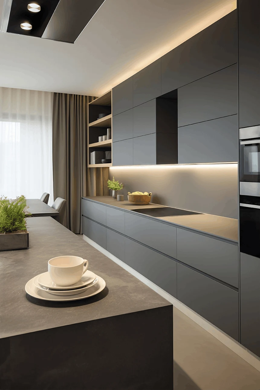 We mostly use luxury imported acrylic and saint Gobain lacqured finish in a combination of high-gloss, matte, and designer finishes to give your interiors a refined and modern look. All our plywood is ISI-certified, including in-house Neem Ply of MR 303 grade for dry areas, and BWP 710 Green Gold Ply for wet areas, ensuring long-lasting durability. For shutters, we use upto 25mm thk HDHMR from ACTION TESA. We also use high-quality hardware from EBCO or HETTICH to ensure smooth functionality and long-term reliability. We provide lighting, profile shutters and rafters and also smart storage solutions etc.